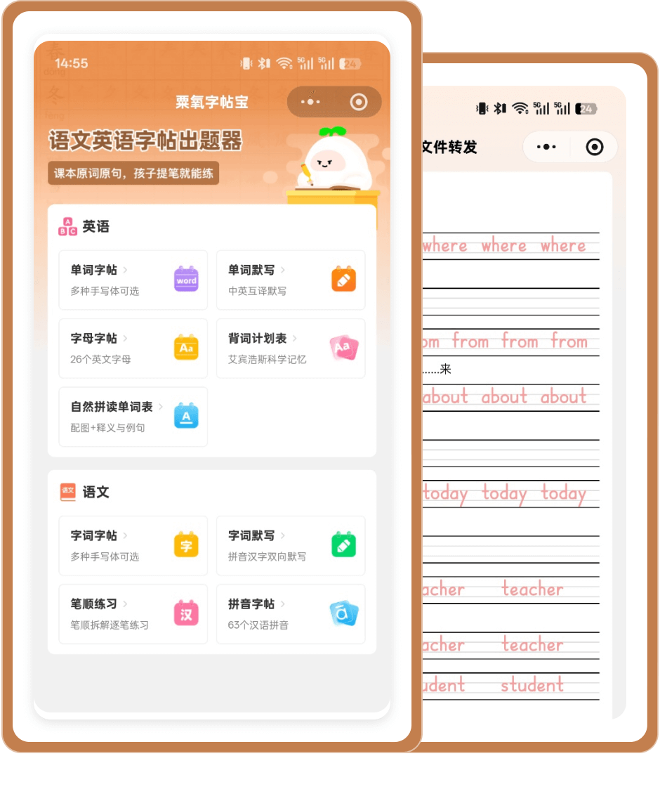字帖宝作为课本同步字帖出题器,深度适配小初高主流教材,实现课本字词1:1精准同步,让孩子随学随练不脱节。它打破低效练字局限,以“练字+记词+默写”三重实效为核心,内置语文正楷、英语衡水体等多类字体,搭配艾宾浩斯抗遗忘计划与双向默写检测,无需家长额外出题,助力默写正确率提升 30%。同时支持自定义易错内容生成专属描红练习,精准攻克薄弱项,满足孩子全阶段练字与知识巩固需求。